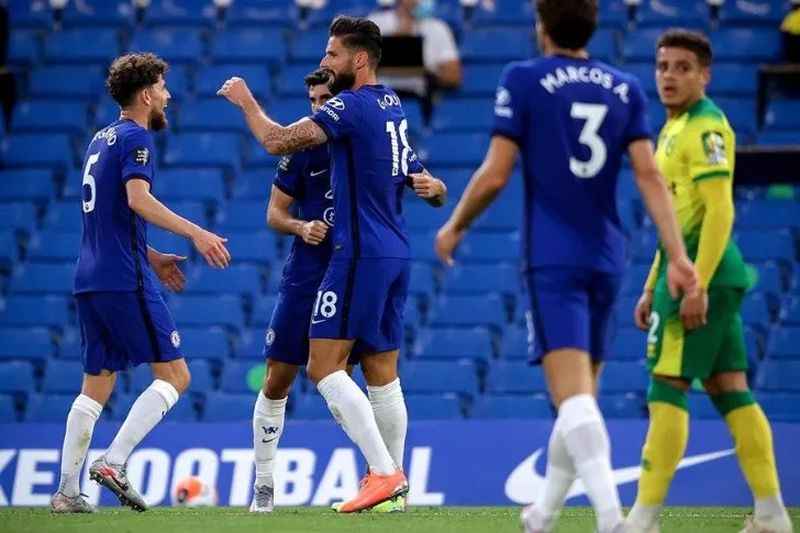 Un tanto de Olivier Giroud contra un encerrado y descendido Norwich City sirvió para que el Chelsea saliese triunfal del duelo de Stamford Bridge y acaricie la Champions League.