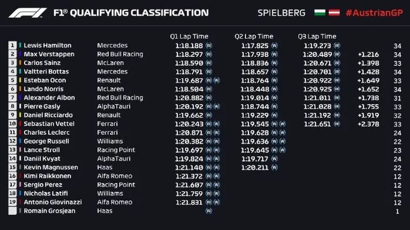 El inglés Lewis Hamilton (Mercedes), séxtuple campeón del mundo de Fórmula Uno, saldrá primero este domingo en el Gran Premio de Estiria, la segunda carrera del Mundial, que se disputará, al igual que la primera, en el Red Bull Ring austríaco.