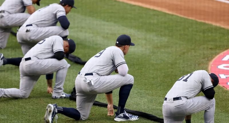 Los beisbolistas de los Nacionales de Washington y de los Yankees de Nueva York protagonizaron este jueves una protesta contra el racismo hincando una rodilla en el suelo antes del inicio del primer partido de la temporada de las Grandes Ligas (MLB).