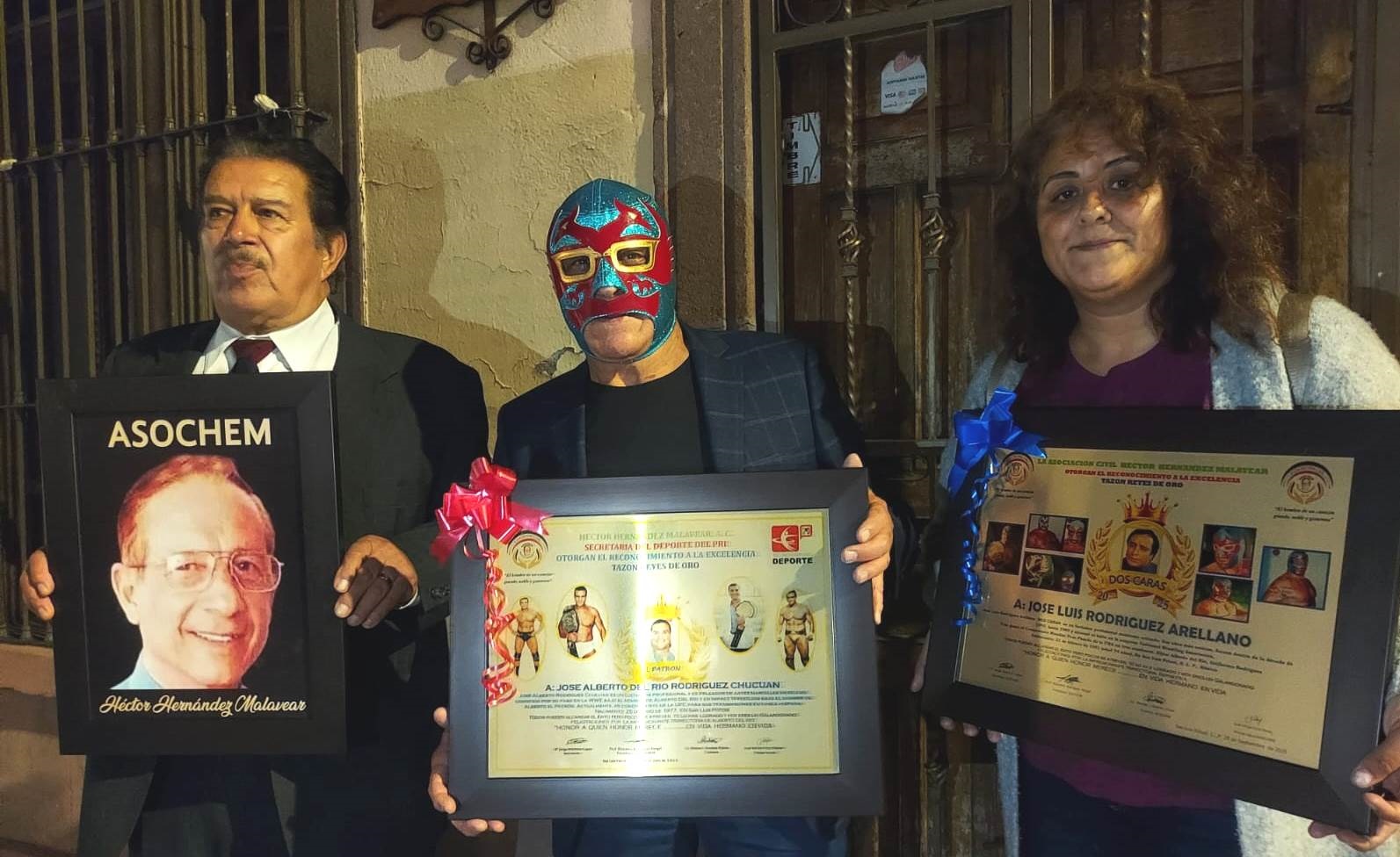 En su visita, ante la ausencia de organizadores, la Asociación Civil Héctor Hernández Malahbear, Asochem, dirigida por Alejandro Rodríguez Rangel, asumió ese compromiso, y le extendió un merecido reconocimiento al notable gladiador Dos Caras, fue el ex deportista Víctor Cruz Flores, quien hizo la entrega; el texto destaca la exitosa carrera profesional alcanzada por el admirado luchador, quien conmovido aceptó la deferencia y manifestó un profundo agradecimiento.